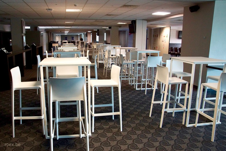 KRC Genk start aan een vernieuwing van het meubilair. Frisse witte barkrukken en stapelbare staantafels maken lounge 1 en 2 meteen trendy. Forza Racing!