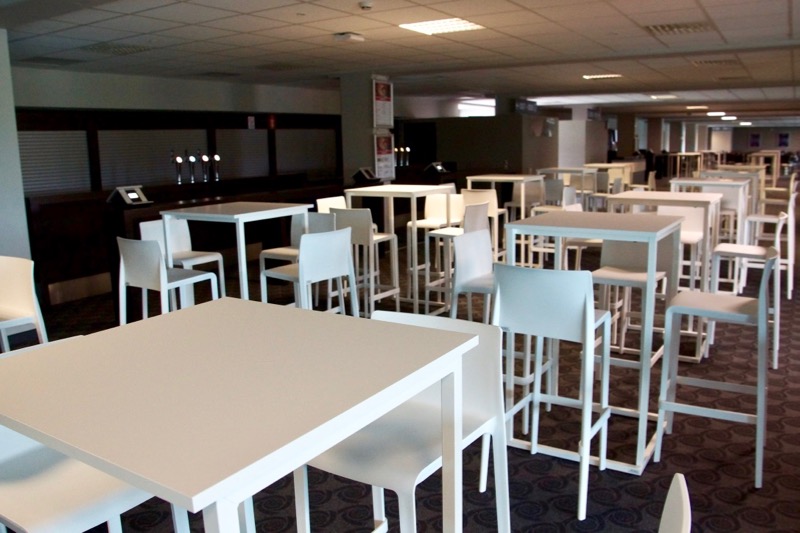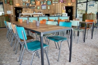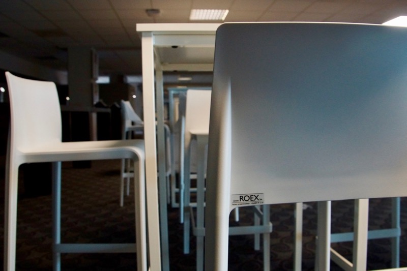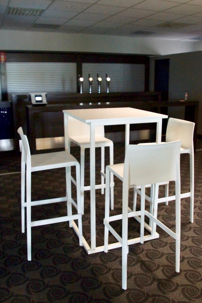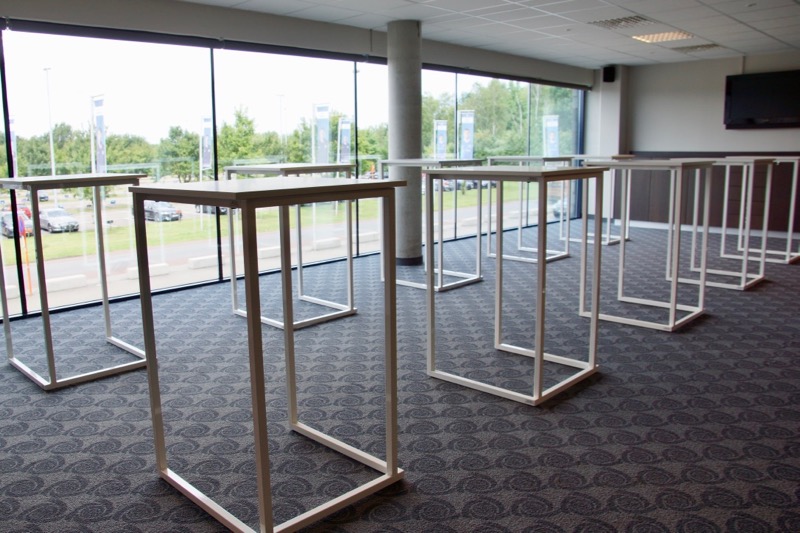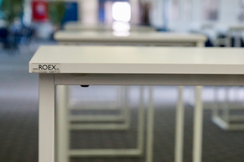Stapelbare tafels met stalen frame ruw staal of gepoederlakt. Blad naar keuze op het frame geplaatst.