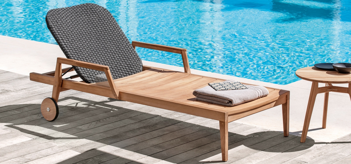 Dankzij het gebruik van innovatieve materialen werd de prachtige collectie Ethimo Knit met oog voor detail gecreëerd. Het frame is van teak of zwart mahoniehout, de zit uit een geweven stof speci vervaardigd voor buitengebruik.
