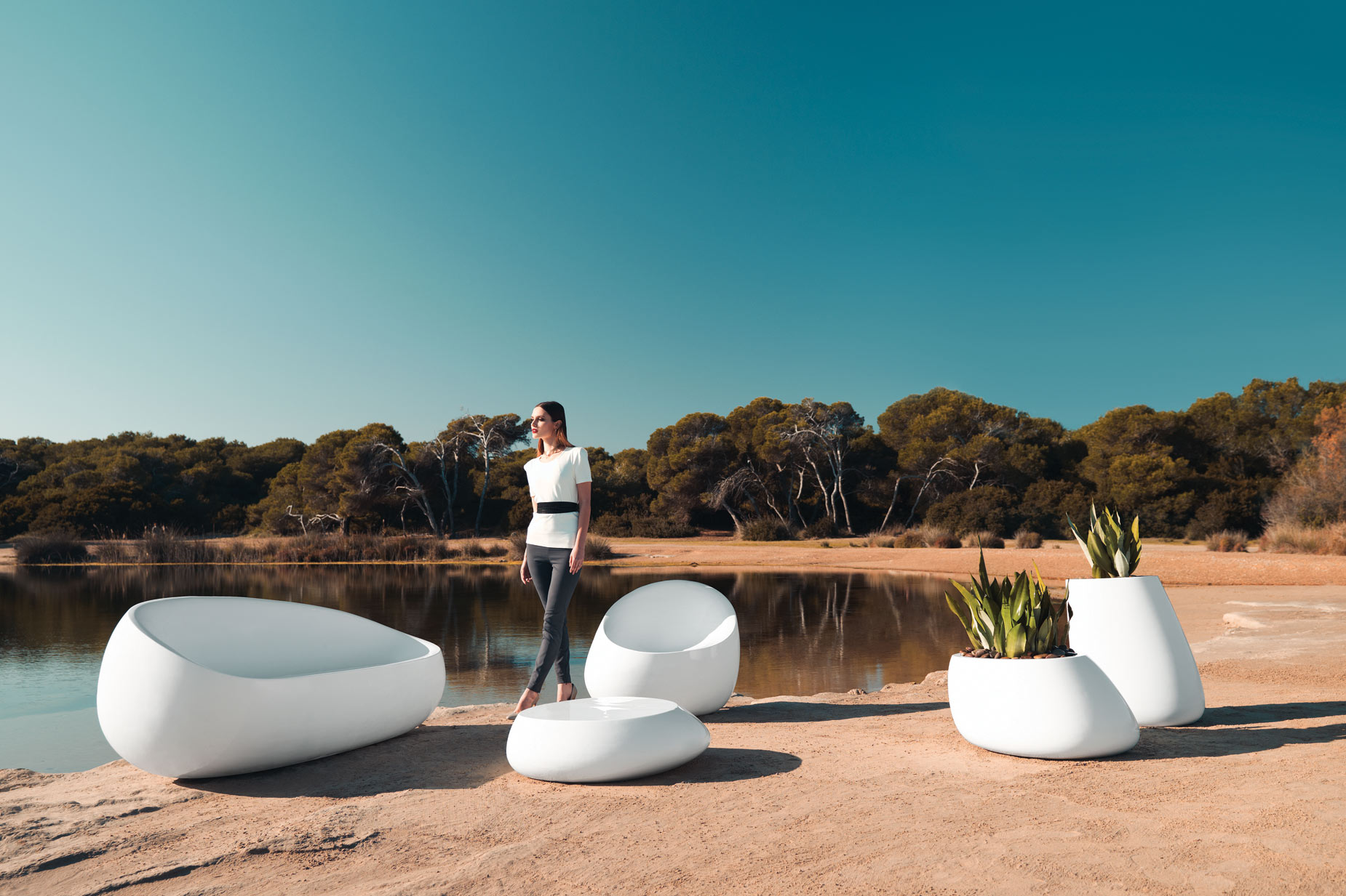 Vondom Stone lounge chair, sofa en coffee table in kunststof of gelakte afwerking. Mogelijkheid tot het voorzien van LED verlichting.