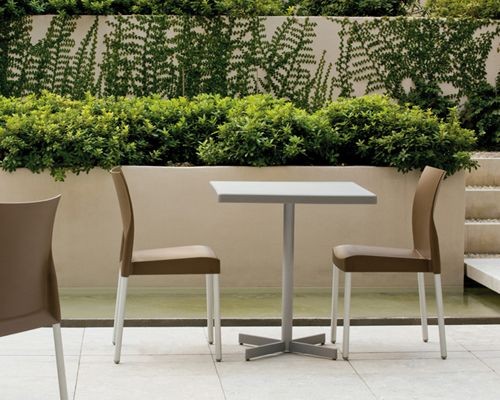 Het lichte tafelonderstel Plastic-X, is geschikt voor tafelbladen van max 80 x80 cm of diam 80 cm.