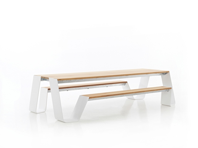 De Hopper combineert de alom gekende look and feel van picknickbanken en picknicktafels met het uitzonderlijke comfort en design van Extremis. Dankzij 4 instapplaatsen is het plaatsnemen makkelijker. De tafel kan, dankzij de schuine vormgeving, als rugleuning dienen.
